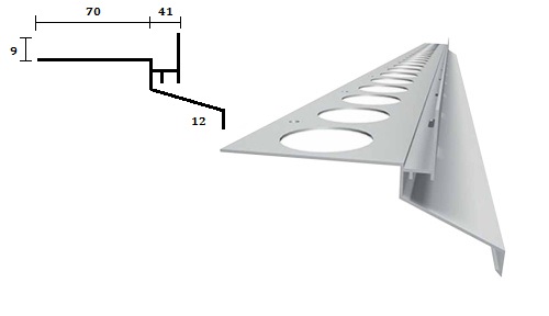 - je hliníkový ukončovací profil s okapničkou o přesahu 40 mm